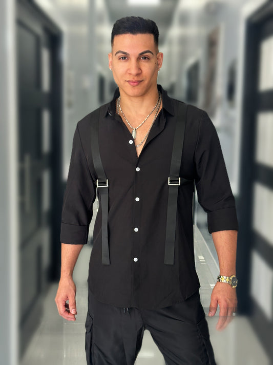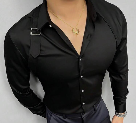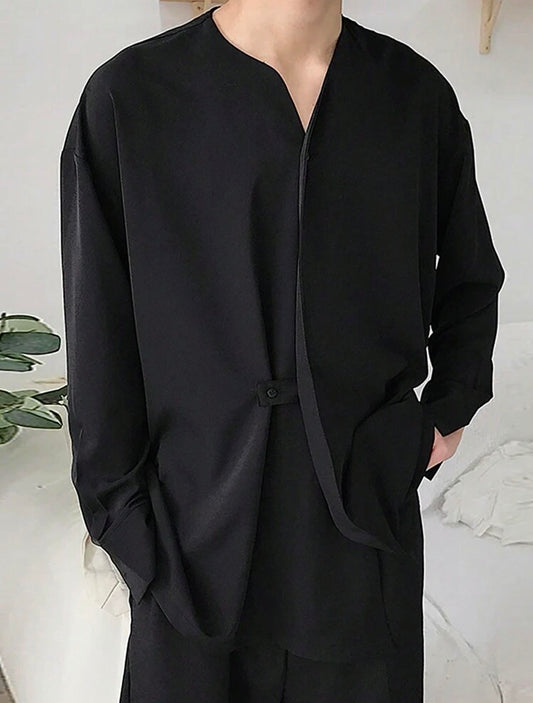Men's Solid Color Asymmetrical Long Sleeve Shirt
