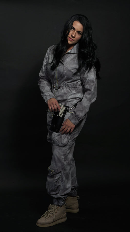 Long Sleeve Cargo Jumpsuit / Gray Multicolor