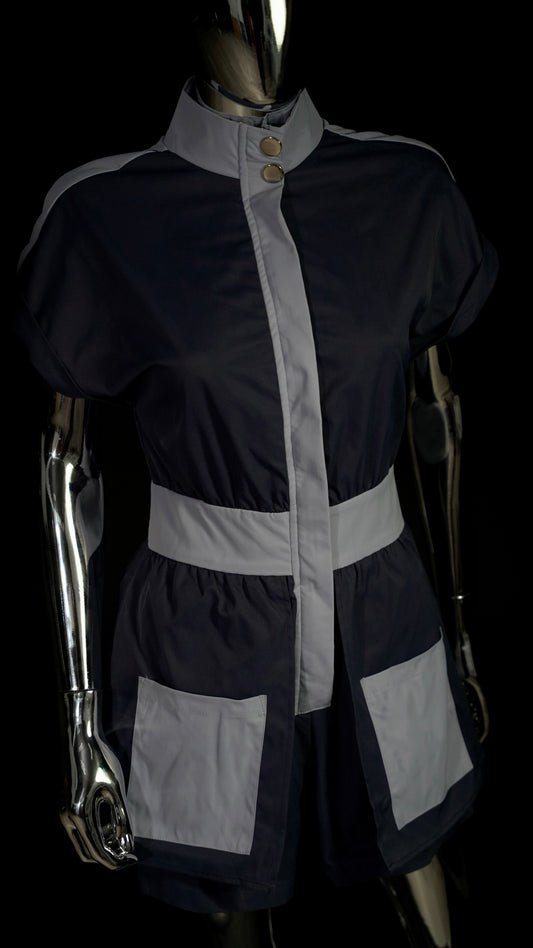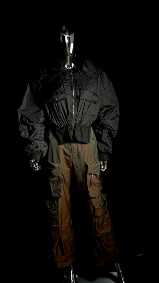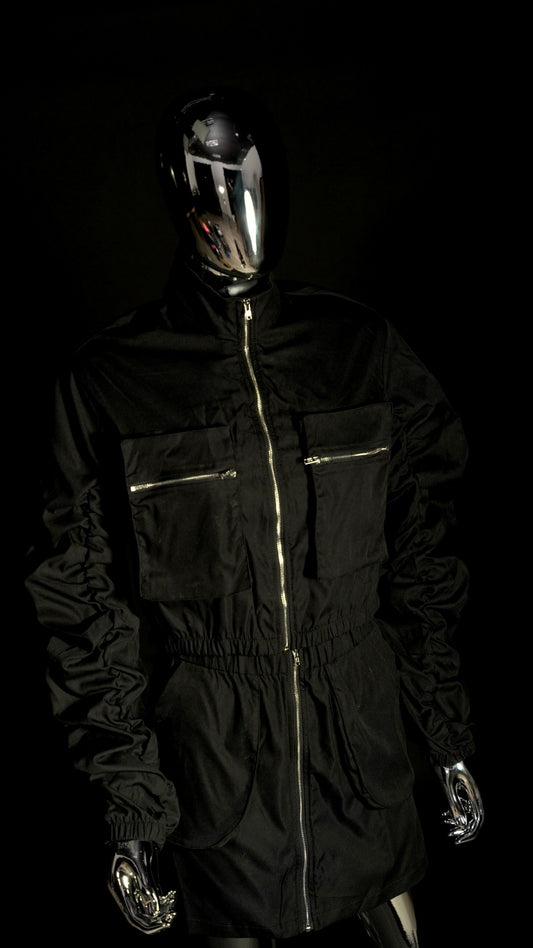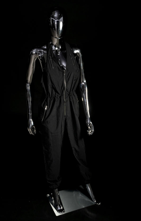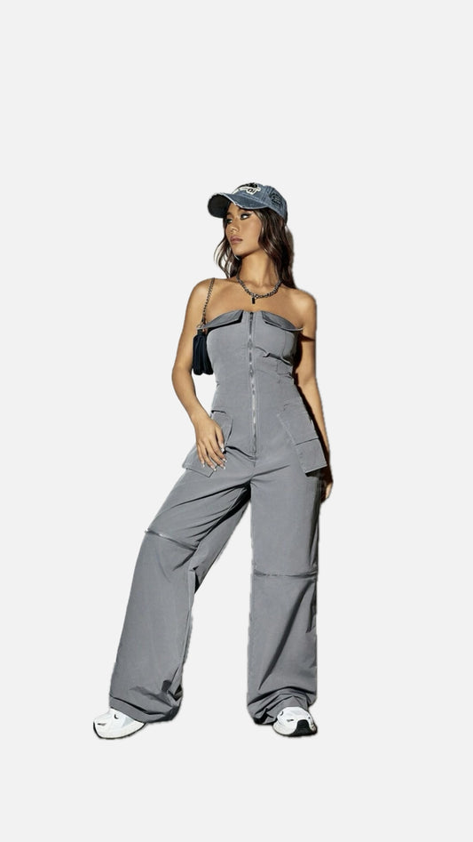Cargo jumpsuit with pockets and zipper on the strapless sides